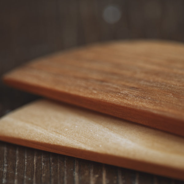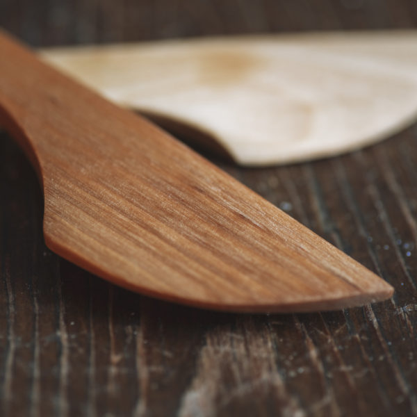 Två smörknivar i trä, tillverkade i verkstäderna på Solåkrabyn i Järna. Ett riktigt hantverk som är till för att användas – varje dag.